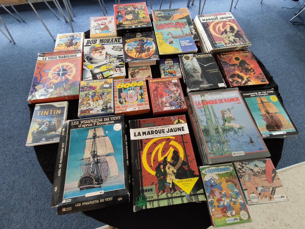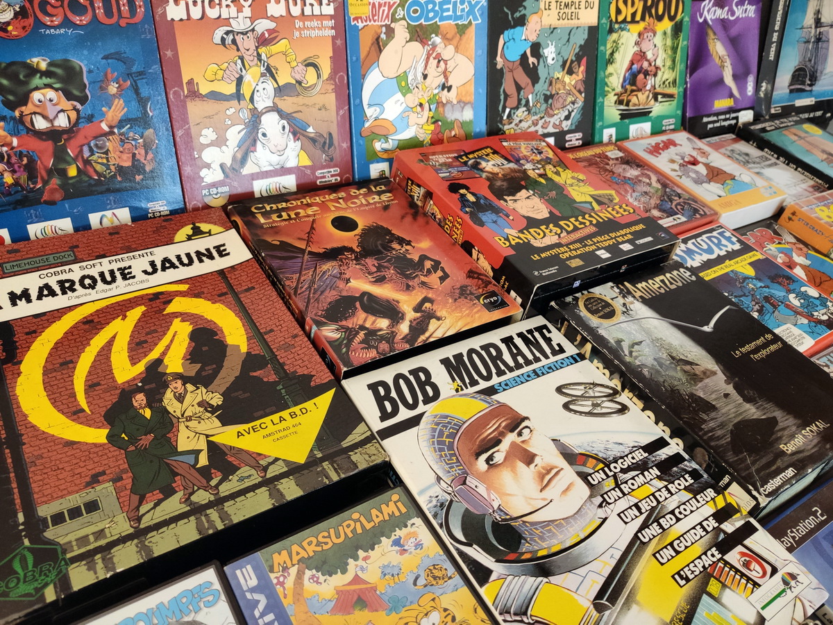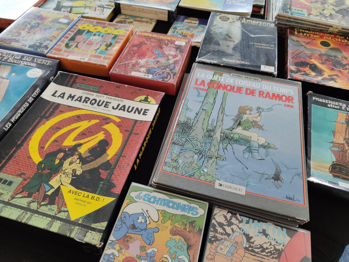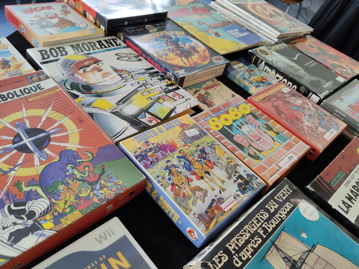 Alors que les premiers studios de création de jeux vidéo florissaient dans les années 80 (CobraSoft, UbiSoft), des amitiés existaient déjà entre les fondateurs de ceux-ci et les dessinateurs de BD, qu'ils soient français, belges ou d'ailleurs. C'est donc tout naturellement que de nombreuses bandes dessinées se sont vues être adaptées en jeux vidéo et parfois même sous des formes innovantes pour l'époque. Au-delà des grandes licences connues de tous comme "Les Schtroumpfs", "Astérix" ou "Lucky Luke", il est nécessaire de faire un travail de rétrospective et creuser un peu le sujet pour découvrir certaines adaptations plus adultes comme "Les passagers du vent", "XIII", "Blake & Mortimer" ou "Les chroniques de la lune noire". Au travers d'une douzaine de jeux jouables sur des machines vintages (consoles et ordinateurs), David BAGEL nous présente sa collection de jeux vidéo qui raviront petits et grands !