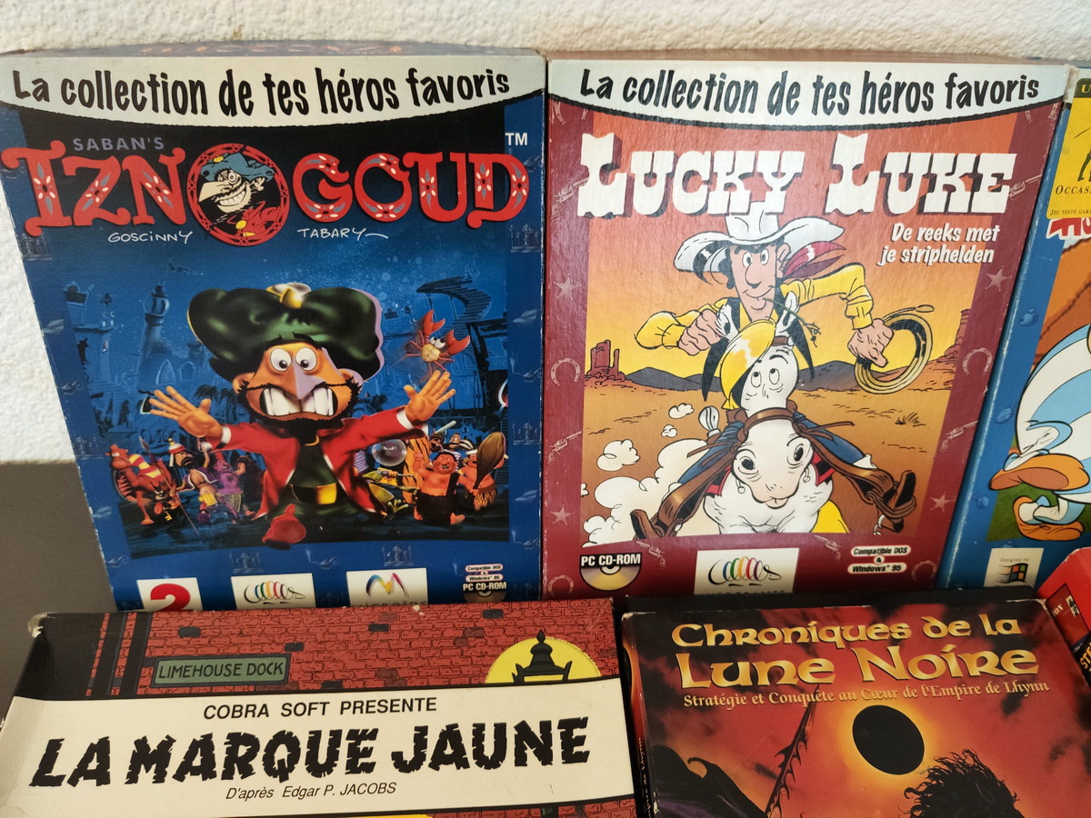 Détail des jeux: Nord & Sud, Bobo, Les Passagers Du Vent, Les Chroniques De La Lune Noire, Xiii, Tintin Au Tibet, Marsupilami, La Quête De L'oiseau Du Temps, Les Schtroumpfs, Tintin Objectif Lune, Largo Winch, Astérix, Spirou, Hagar du Nord, Corto Maltese : Secrets De Venise, Bob Morane : Science-Fiction, Les Aventures De Tintin : Le Secret De La Licorne , Iznogoud, Astérix Et Obélix, Lucky Luke, L'Amerzone, Blake Et Mortimer : Piège Diabolique, Blake & Mortimer : La Marque Jaune...