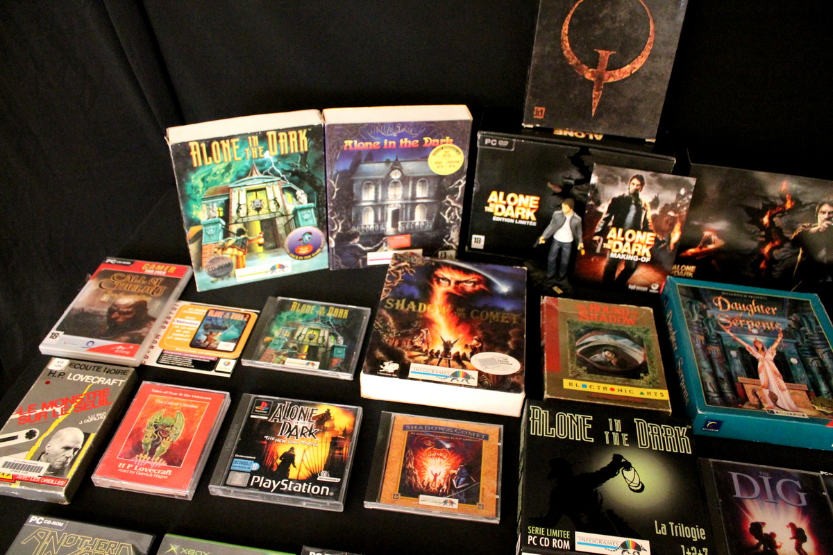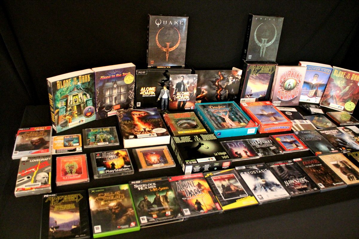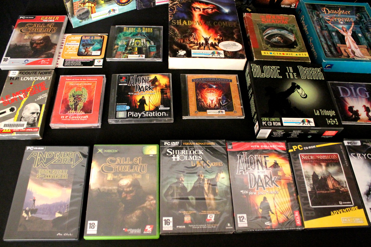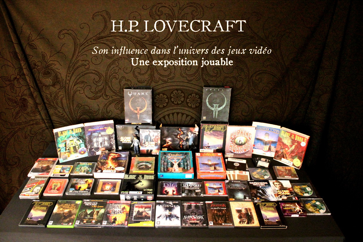 Environ une quinzaine de jeux vidéo inspirés par l’univers de Lovecraft couvrant une trentaine d’années d’évolution du jeu vidéo, de l’aventure en mode texte des années 80 (véritable lien avec le monde de la littérature) au « first person shooter » des années 2010, seront exposés et jouables sur divers ordinateurs et consoles (PC, Mac, Commodore 64, Nintendo GameCube, etc…), bien sûr accompagnés de leurs boîtes, posters, magazines, livres, bandes dessinées et autres produits dérivés.