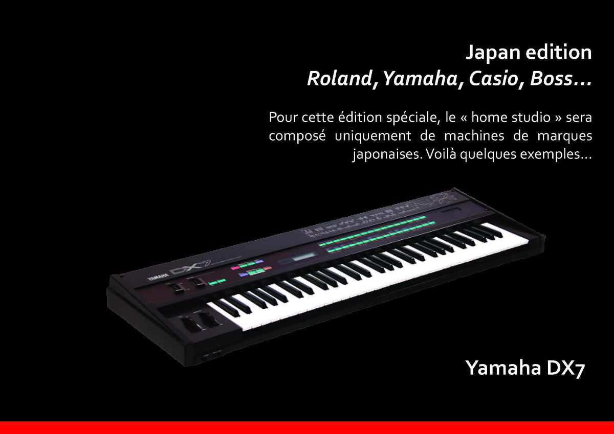 Présentation d’un véritable setup « home studio » fonctionnel pour retracer l’arrivée et l’installation de l’ordinateur au coeur du studio. Atelier de composition musicale basé sur des synthétiseurs, boites à rythmes, multi-effets, ordinateurs 8 bit etc… Pour cette édition spéciale, le « home studio » sera composé uniquement de machines de marques japonaises.